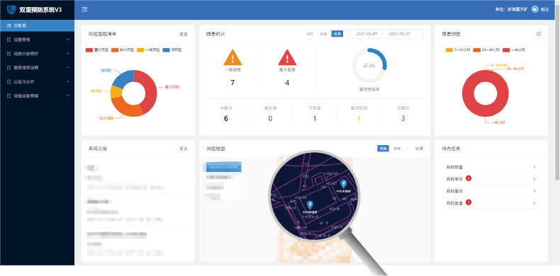 智慧双防体系构建涉及面广、专业性强、工作难度大,绝大多数的企业在体系构建过程中“认不清,想不到”,不仅与现有的安全生产标准化体系脱节另起炉灶另搞一套,而且不能将风险分级管控和隐患排查治理体系有机结合系统化。朗福莱智慧双防体系在科学合理的理论体系指导下,形成了组织体系建设、人员职责划分、风险辨识评价、管控措施方案、隐患排查治理的完整闭环体系,同时支持企业定制化产品,与企业现有体系深度融合,真正将双防体系落到实处。